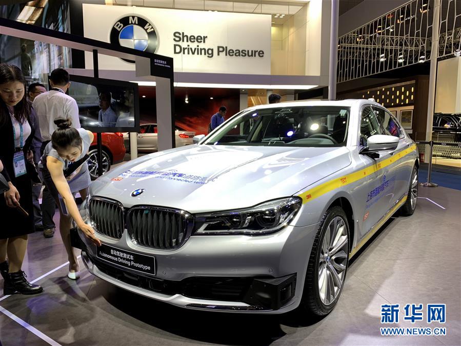 這是11月7日在汽車展區(qū)拍攝的配備L4級(jí)自動(dòng)駕駛技術(shù)的寶馬7系測試車。新華社記者 牛曉雷 攝