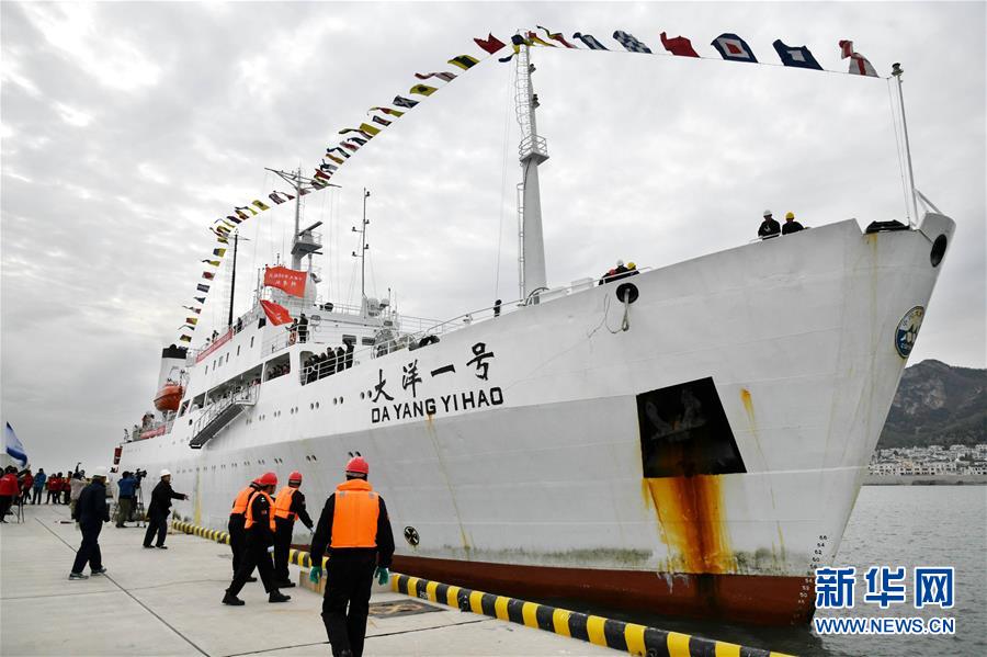11月7日,“大洋一號(hào)”??吭谇鄭u市嶗山區(qū)的青島海洋科學(xué)考察基地碼頭。