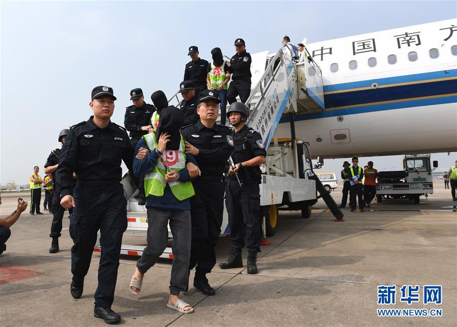 當(dāng)日,一架從菲律賓起飛的中國民航包機抵達深圳寶安機場,36名利用網(wǎng)絡(luò)刷單實施電信網(wǎng)絡(luò)詐騙的犯罪嫌疑人被集中押解回國。涉及全國多個?。▍^(qū)、市)的700余起電信網(wǎng)絡(luò)詐騙案宣布告破,涉案金額1800余萬元。 新華社記者毛思倩攝