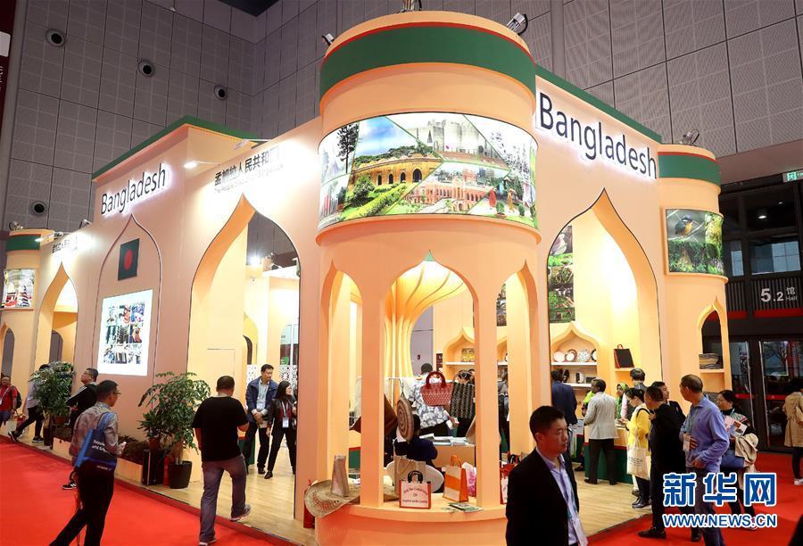 這是11月7日拍攝的孟加拉國展區(qū)。 中國國際進口博覽會11月5日在上海開幕。國家貿易投資綜合展(國家展)是中國國際進口博覽會的重要內容,共有82個國家、3個國際組織設立71個展臺。 新華社記者 陳飛 攝