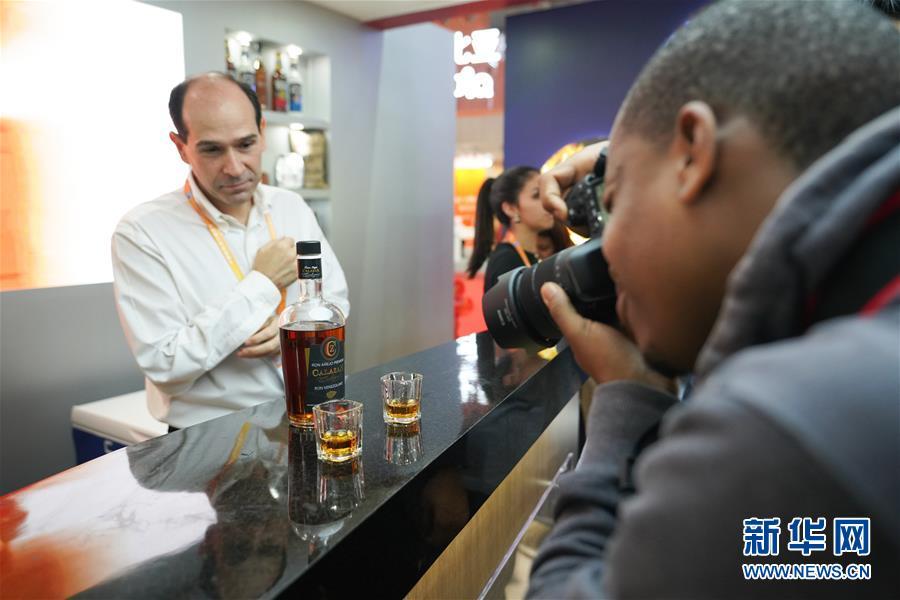 11月7日,在委內瑞拉展區(qū),一名參觀者拍攝當地生產的朗姆酒。 中國國際進口博覽會11月5日在上海開幕。國家貿易投資綜合展(國家展)是中國國際進口博覽會的重要內容,共有82個國家、3個國際組織設立71個展臺。 新華社記者 王天聰 攝