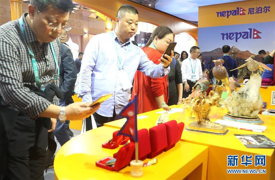 11月7日,人們在尼泊爾展區(qū)參觀。 中國國際進口博覽會11月5日在上海開幕。國家貿易投資綜合展(國家展)是中國國際進口博覽會的重要內容,共有82個國家、3個國際組織設立71個展臺。 新華社記者 陳飛 攝