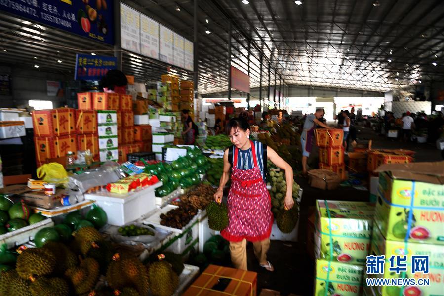 這是廣西憑祥市物流園內(nèi)的水果交易市場(chǎng)一角(9月4日攝)。新華社記者 張愛林 攝