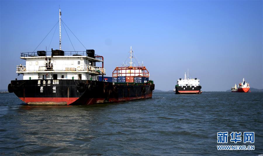 這是在欽州茅尾海上,萬噸海輪陸續(xù)進(jìn)入欽州港營(yíng)運(yùn)貨物(2017年12月18日攝)。新華社記者 張愛林 攝