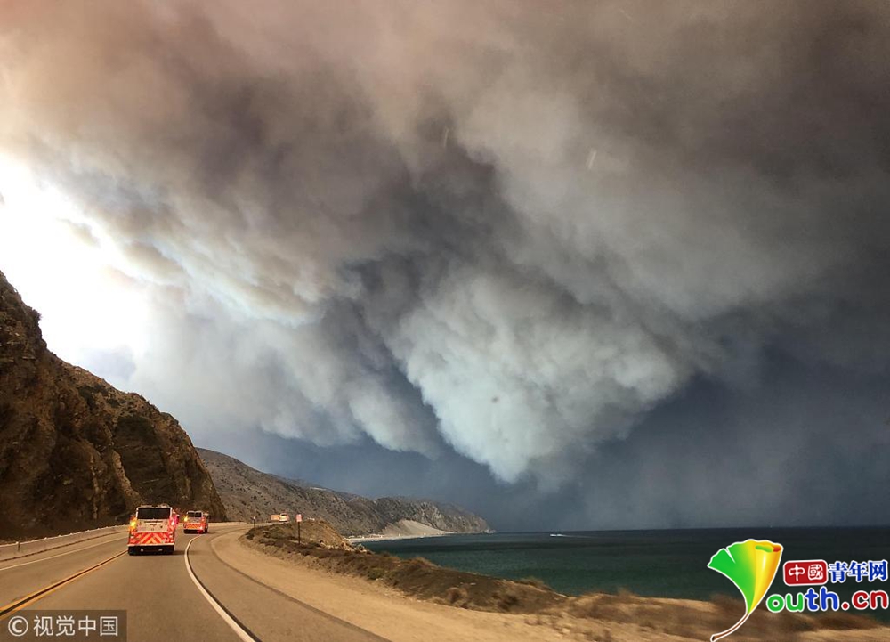 當(dāng)?shù)貢r(shí)間11月9日下午,美國加利福尼亞州南部文圖拉郡(Ventura County)等地熊熊山火已延燒逾萬英畝,濃煙遮天蔽日。