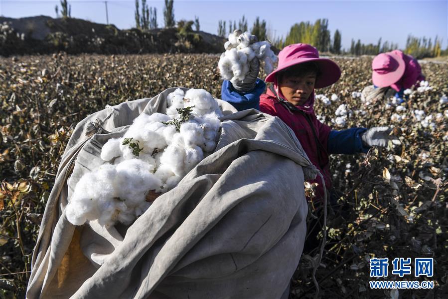 10月21日,棉農(nóng)在棉田采收棉花。目前,河北省南宮市40萬畝棉花迎來采收季。新華社記者朱旭東攝