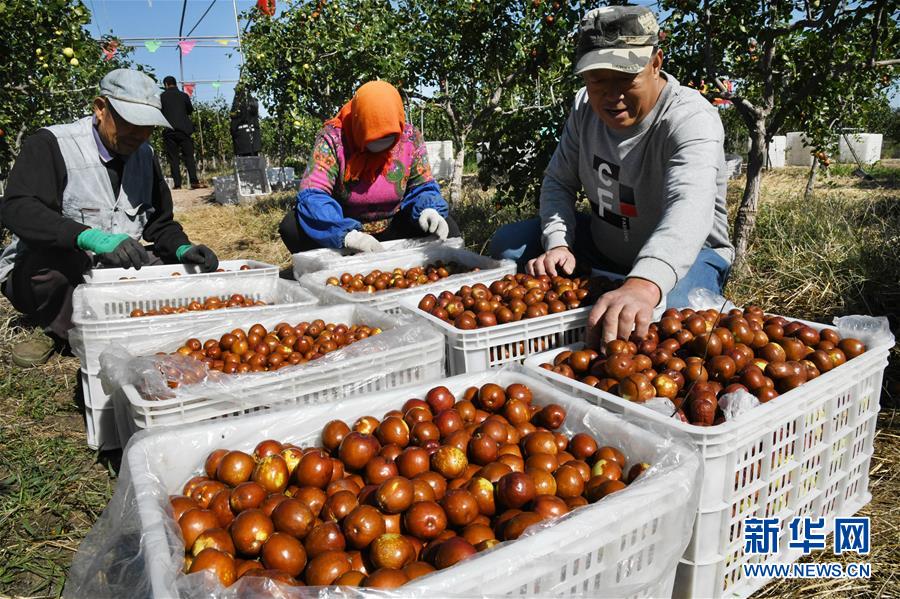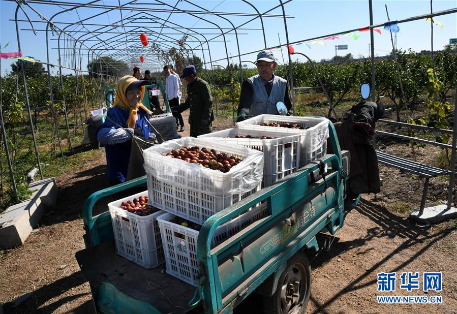 10月17日,在山東省青島市即墨區(qū)藍(lán)村鎮(zhèn)王演莊北村,種植戶在果園里收集采摘的大棗。 金秋時節(jié),農(nóng)民們忙著收獲成熟的農(nóng)作物,喜迎豐收。 新華社記者 李紫恒攝