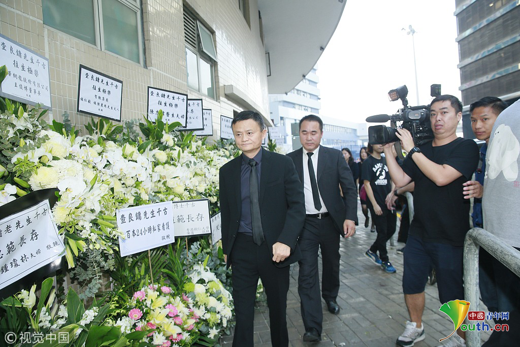 香港,已故著名武俠小說(shuō)家金庸(查良鏞)香港設(shè)靈。圖為馬云現(xiàn)身致哀。圖片作者:null