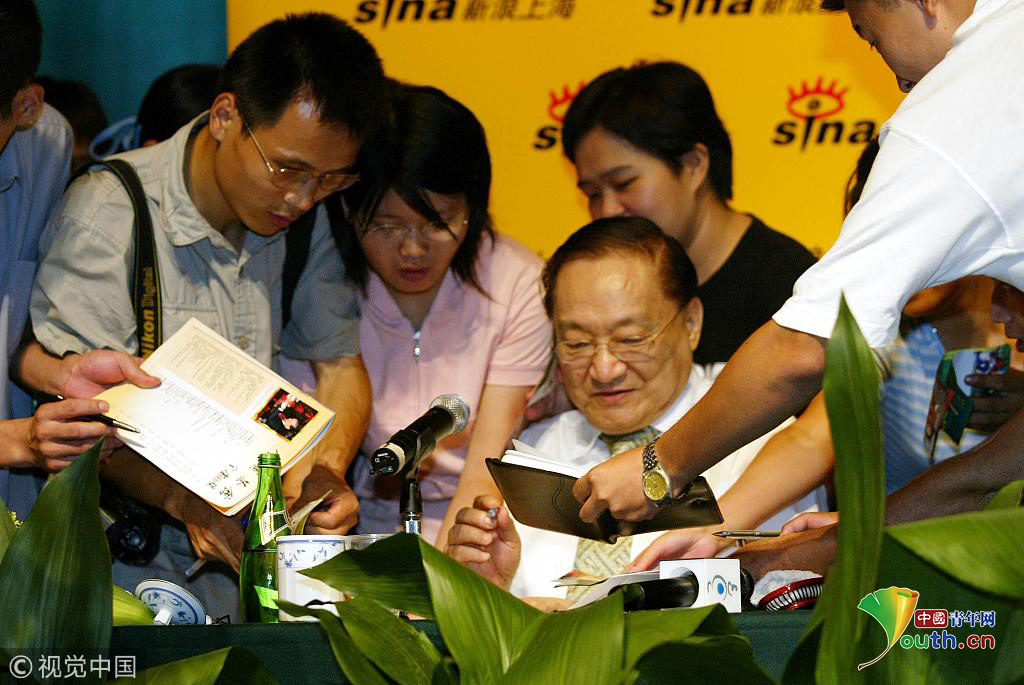 2003年7月25日,杭州,金庸給金迷簽名。圖片作者:史訓(xùn)鋒