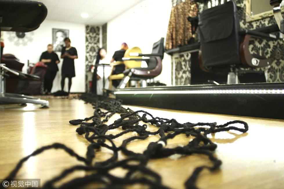當(dāng)?shù)貢r間2018年9月14日,英國韋靈伯勒,正在英國旅行的Asha Mandela來自美國佛羅里達(dá)州,是世界上頭發(fā)最長的女人。她的頭發(fā)現(xiàn)在長約34米(110英尺),超過三輛雙層巴士的長度。Asha Mandela十年前打破了世界吉尼斯頭發(fā)最長的紀(jì)錄。
