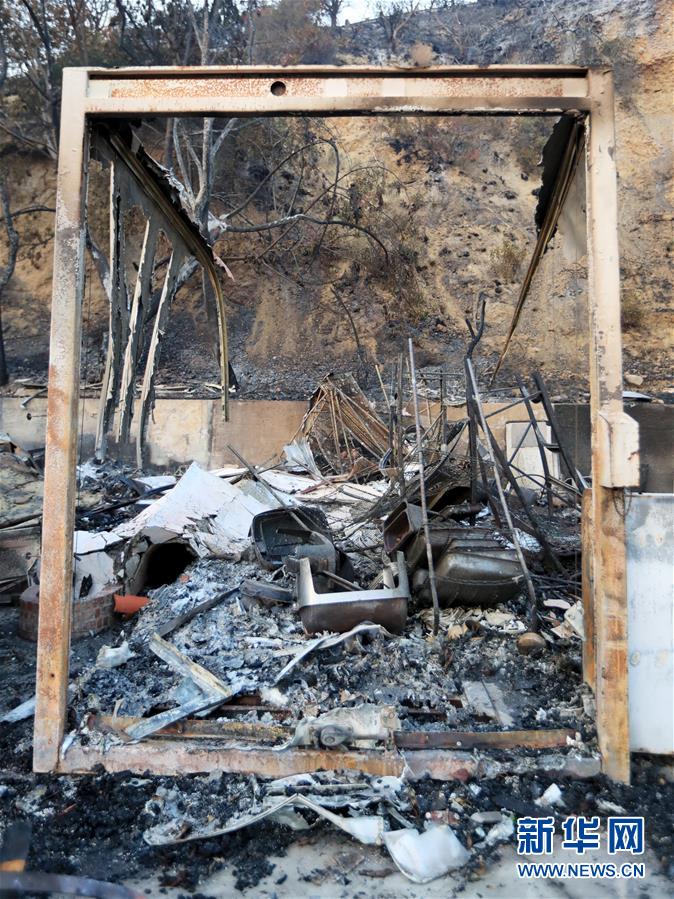 這是11月10日在美國(guó)加利福尼亞州馬里布市拍攝的一處被燒毀的廢墟。連日來(lái),美國(guó)加利福尼亞州野火肆虐。 新華社記者李穎攝