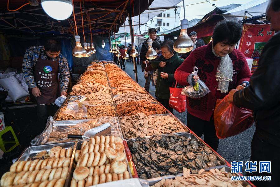 11月19日,人們在廟會現場購買當地美食。 新華社記者 徐昱 攝