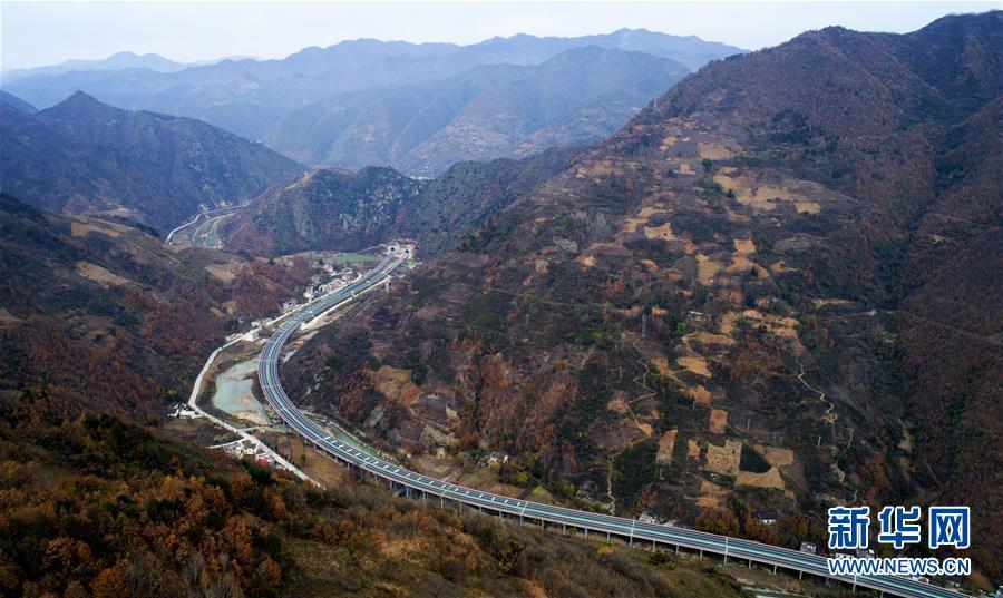 11月20日拍攝的水陽高速公路黃家灣特大橋路段(無人機(jī)拍攝)。 近日,記者從陜西省交通建設(shè)集團(tuán)公司了解到,陜西柞水至山陽高速公路已全線貫通即將通車。據(jù)介紹,(柞)水(山)陽高速公路全長78.8公里,開通后將實(shí)現(xiàn)包茂高速、福銀高速在陜南商洛地區(qū)的連接,開辟出秦嶺南麓的一條橫向高速大通道,對完善陜西高速公路路網(wǎng)結(jié)構(gòu)、促進(jìn)陜南區(qū)域經(jīng)濟(jì)發(fā)展、加快山區(qū)群眾脫貧致富具有重要意義。 新華社記者劉瀟攝