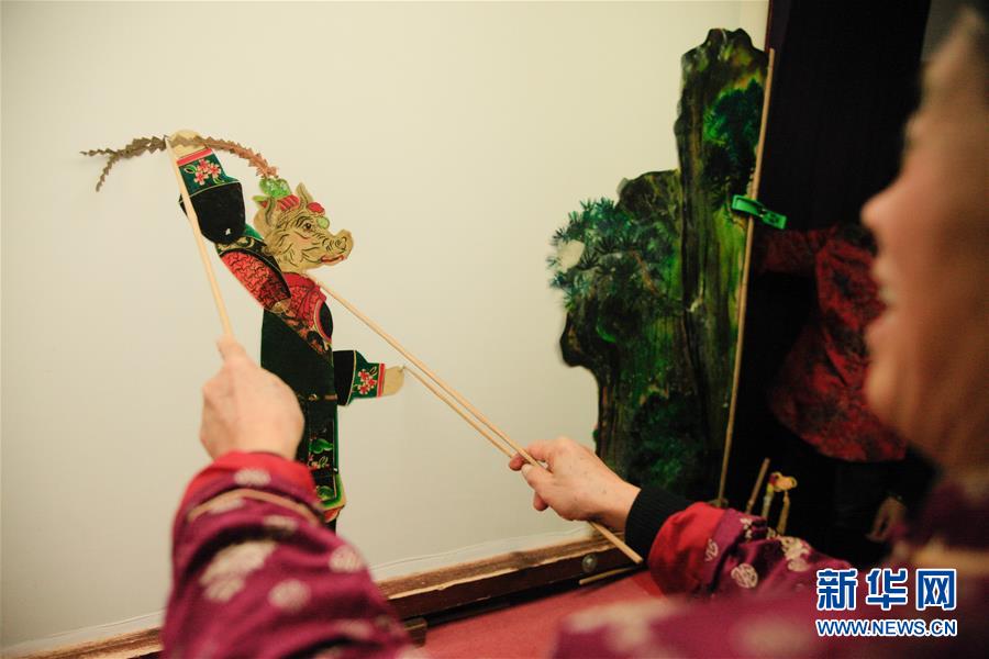 11月20日,在浙江海寧市南關(guān)廂歷史街區(qū),張坤榮在表演皮影戲。新華社記者朱唯希攝
