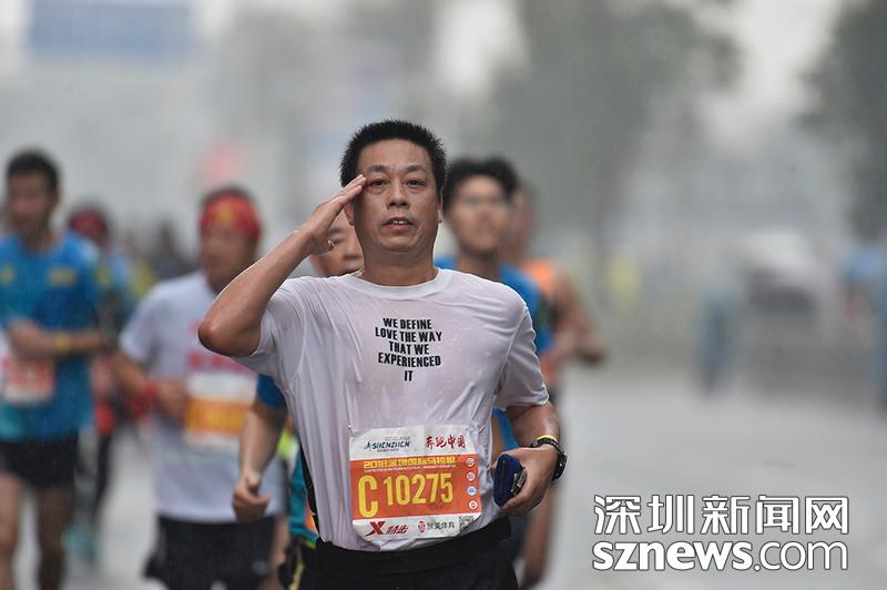 2018年12月16日,深圳國際馬拉松位于后海的折返點,一名選手正在向終點沖刺。