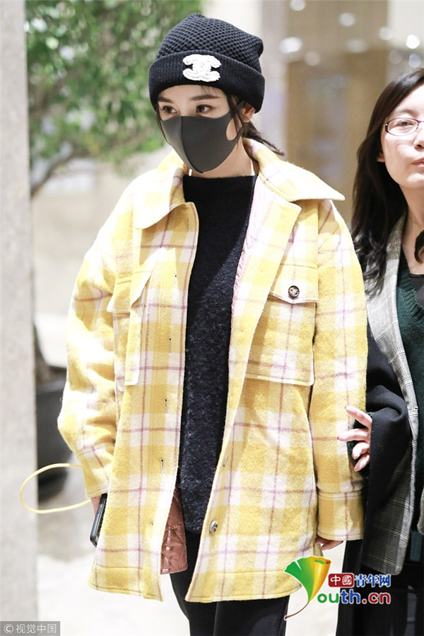 2018年1月6日,上海,楊冪現(xiàn)身某酒店。她戴著帽子口罩,身穿黑色套裝,而外面搭配的奶黃格子外套卻瞬間減齡,明亮又惹眼,無懼寒冬露著纖細(xì)腳踝,依舊是那個(gè)很會穿搭的大冪冪。
