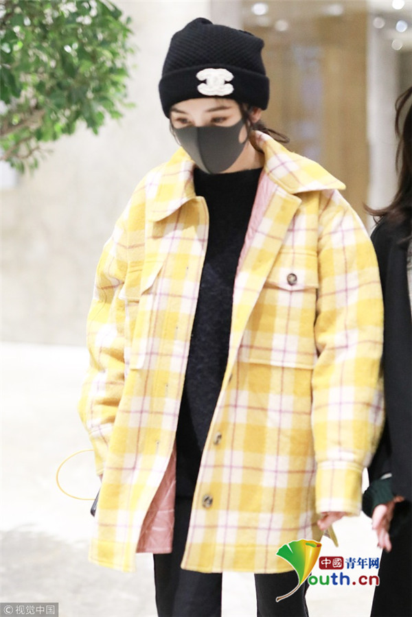 2018年1月6日,上海,楊冪現(xiàn)身某酒店。她戴著帽子口罩,身穿黑色套裝,而外面搭配的奶黃格子外套卻瞬間減齡,明亮又惹眼,無懼寒冬露著纖細腳踝,依舊是那個很會穿搭的大冪冪。
