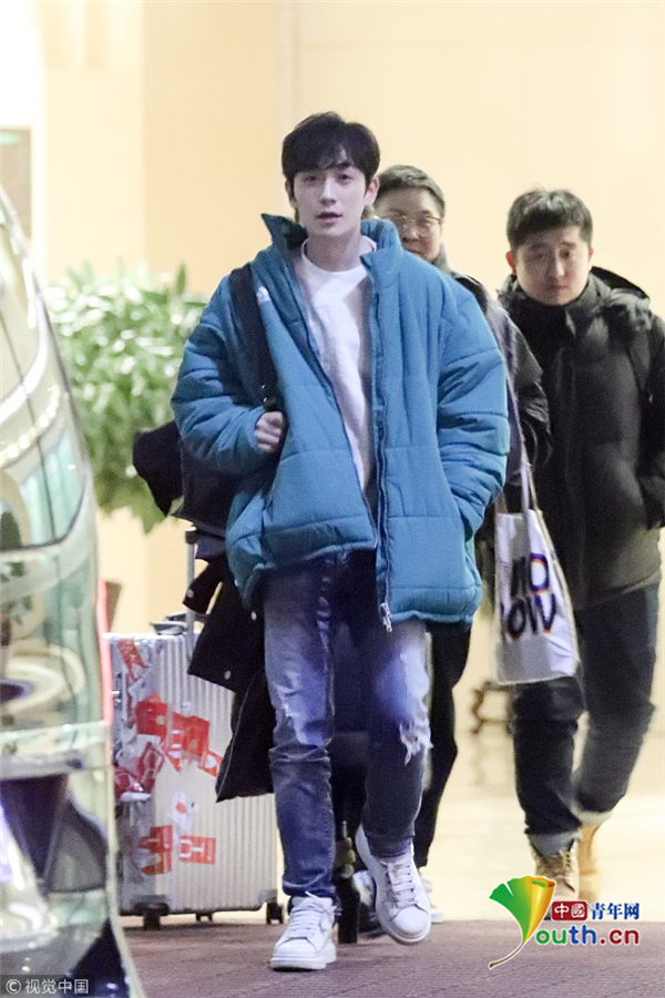 1月15日,北京,朱一龍現(xiàn)身機場。他穿綠色棉襖一路插兜保暖,搭配破洞褲潮范兒十足長腿搶鏡,打扮簡單毫無男神包袱,看鏡頭還一臉呆萌,但氣質(zhì)仍然出眾。