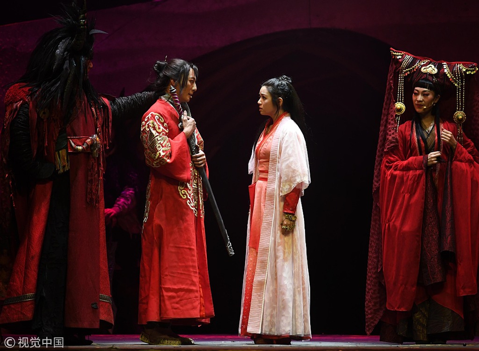 日前,舞臺劇《大話西游之大圣娶親》在梅蘭芳大劇院首次公開演出。陳妍希飾演“紫霞仙子”靈氣十足。視覺中國/圖
