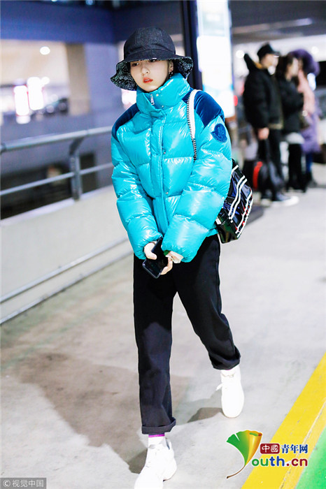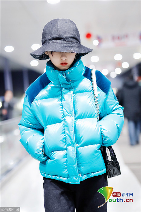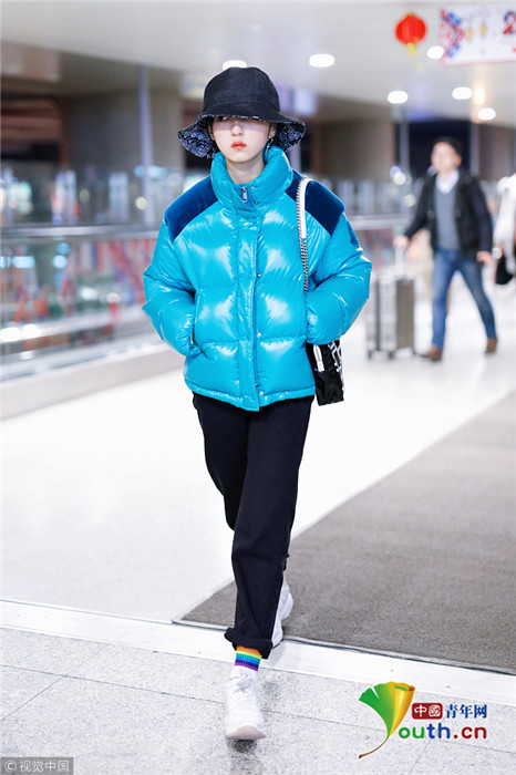 2019年1月31日,上海,張子楓現(xiàn)身機場。她身穿藍(lán)色羽絨服,戴著大檐帽也難擋好氣色,雪膚紅唇妝容精致展現(xiàn)女人味。
