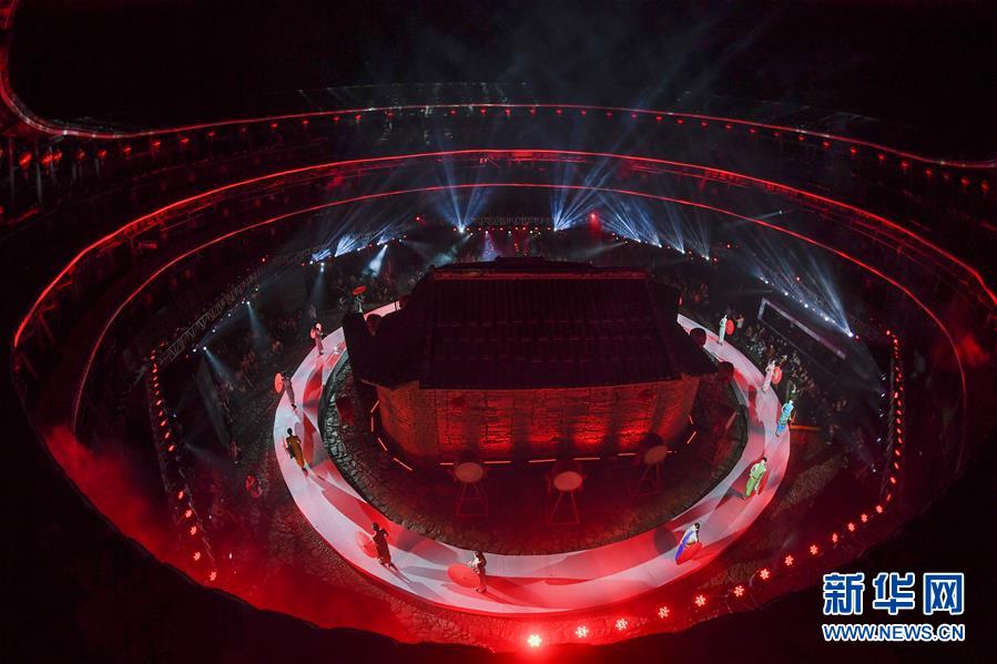 4月27日,模特在位于福建省南靖縣的土樓裕昌樓展示服飾。 當(dāng)日,土樓光語國際時(shí)尚大秀在福建省南靖縣的土樓裕昌樓內(nèi)舉行。這場融匯文化、時(shí)尚與旅游元素的大秀,通過傳統(tǒng)與時(shí)尚的有機(jī)融合,展現(xiàn)南靖土樓及文化的魅力和風(fēng)采。 新華社記者 宋為偉 攝