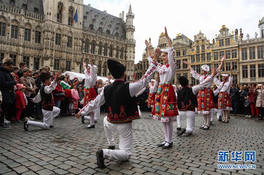 4月28日,在比利時布魯塞爾大廣場,演員表演保加利亞的民族舞蹈。 當日,來自歐洲多個國家的表演者在比利時布魯塞爾大廣場載歌載舞,慶祝為期五天的2019年巴爾干文化藝術節(jié)圓滿落幕。該文化藝術節(jié)旨在用音樂、舞蹈、文學、街頭藝術等方式向公眾展現(xiàn)東南歐巴爾干半島地區(qū)的民族文化風情。 新華社記者鄭煥松攝