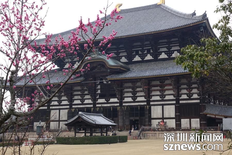 東大寺大佛殿正面寬度57米,深50米,為世界最大的木造建筑。殿內(nèi)放置著高15米以上的盧舍那佛像。中國(guó)唐代高僧鑒真和尚曾在這里設(shè)壇授戒。李仁奇 攝