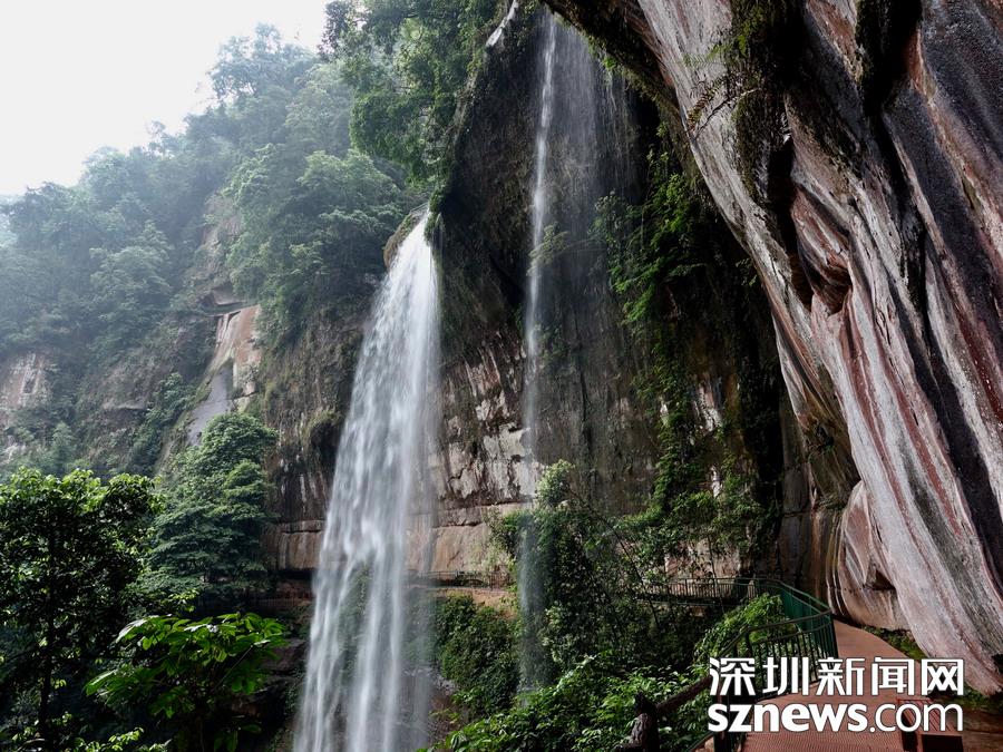 走進(jìn)赤水丹霞旅游區(qū),艷麗鮮紅的丹霞赤壁,拔地而起的孤峰窄脊,儀態(tài)萬千的奇山異石,巨大的巖廊洞穴和優(yōu)美的丹霞峽谷與綠色森林、飛瀑流泉相映成趣,具有極高的觀賞價值,令人傾倒。李仁奇 攝