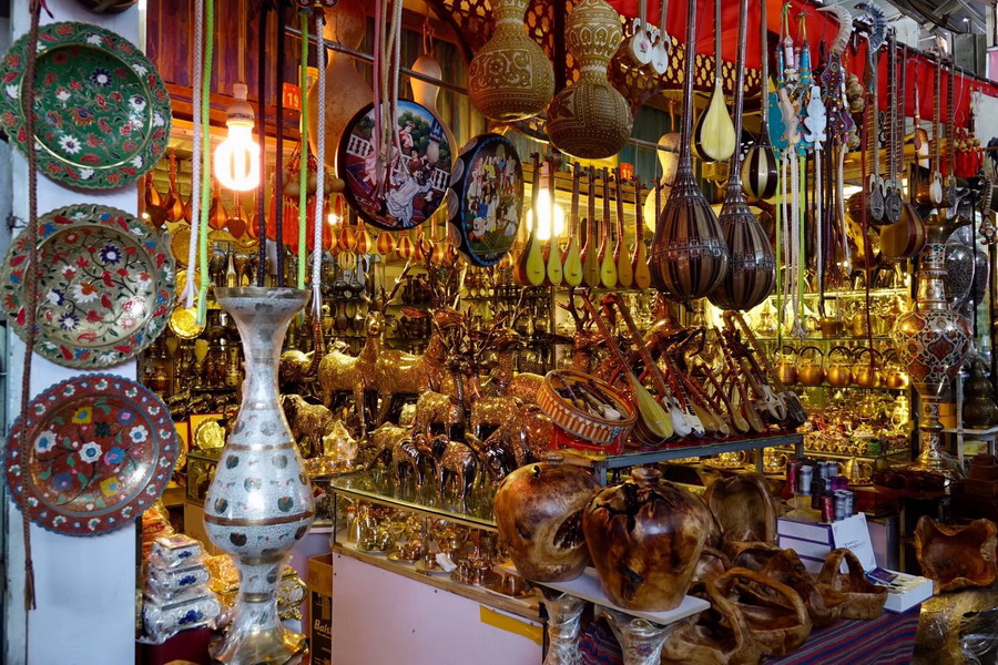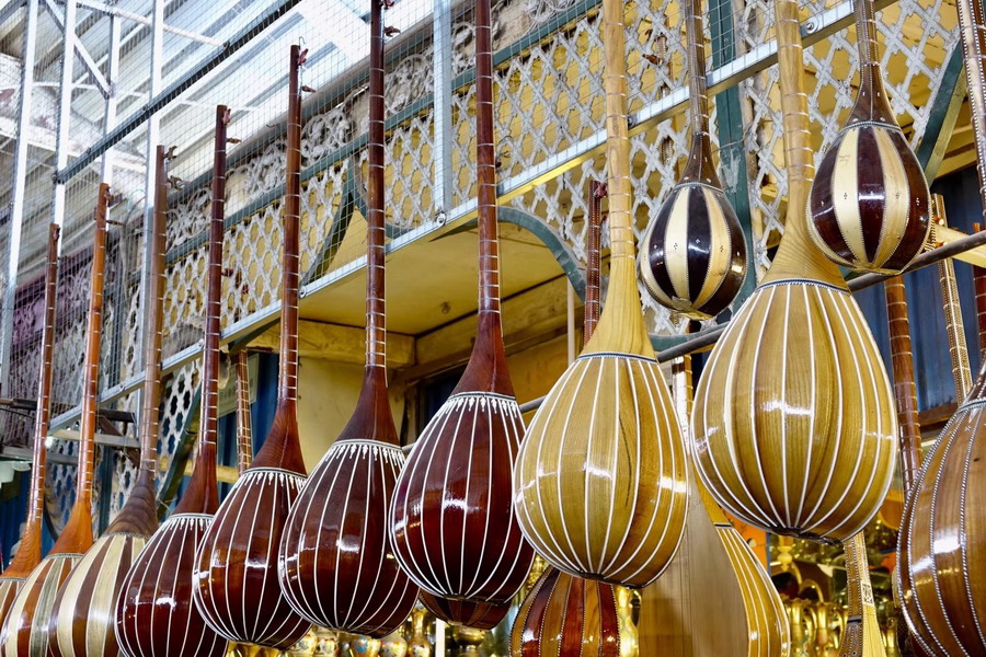 兩千多年前,這里是古疏勒國王宮所在地,從500多年前建立艾提尕爾清真寺起始,吾斯塘博依街逐漸成為一條喧鬧繁華的主街,匯聚了當(dāng)?shù)刈畛錾哪芄で山?,是名副其?shí)的手工藝品一條街。李仁奇 攝