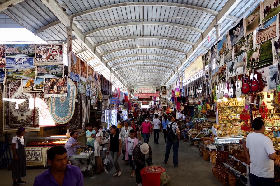已有2000多年歷史,古代是亞洲最大的集市。現(xiàn)在的大巴扎占地250畝,內(nèi)設(shè)21個(gè)專業(yè)市場(chǎng),5000多個(gè)攤位,每天人流量達(dá)10萬以上,是我國西北地區(qū)最大的國際貿(mào)易市場(chǎng)。李仁奇 攝