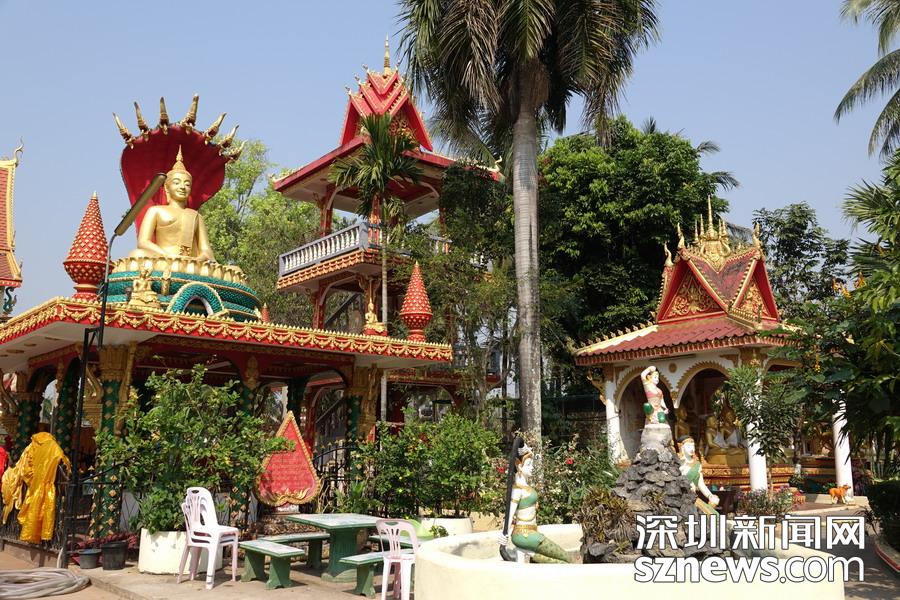 西蒙寺是萬象香火最旺盛的一個(gè)寺廟,又稱神城寺,每天有很多當(dāng)?shù)厝思坝慰蛠磉@里祈福,尤其受泰國(guó)游客鐘愛。李仁奇 攝