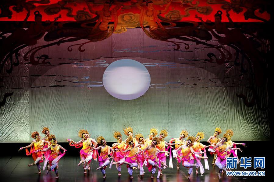 8月7日晚,舞蹈演員們在表演中。 當日,“舞出中國風”慶祝新中國成立70周年公益展演在上海國際舞蹈中心舉行。舞蹈家黃豆豆攜手30位青年舞者進行志愿演出,并與多家藝術團隊合作,共同呈現了一臺具有濃郁中國風的原創(chuàng)舞專場,為新中國成立70周年獻禮。 新華社記者 劉穎 攝