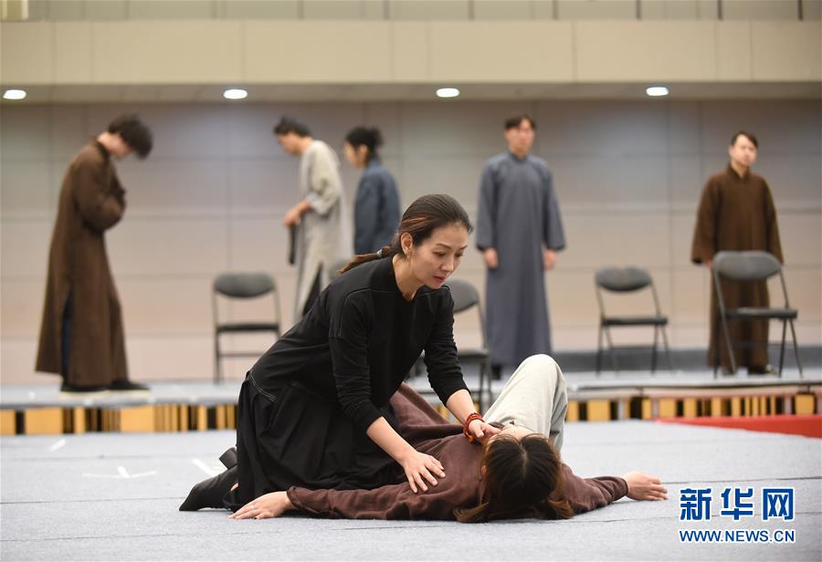 12月26日,在話(huà)劇《二月》中飾演陶嵐的演員盧芳(前左)在排練。 新華社記者 羅曉光 攝