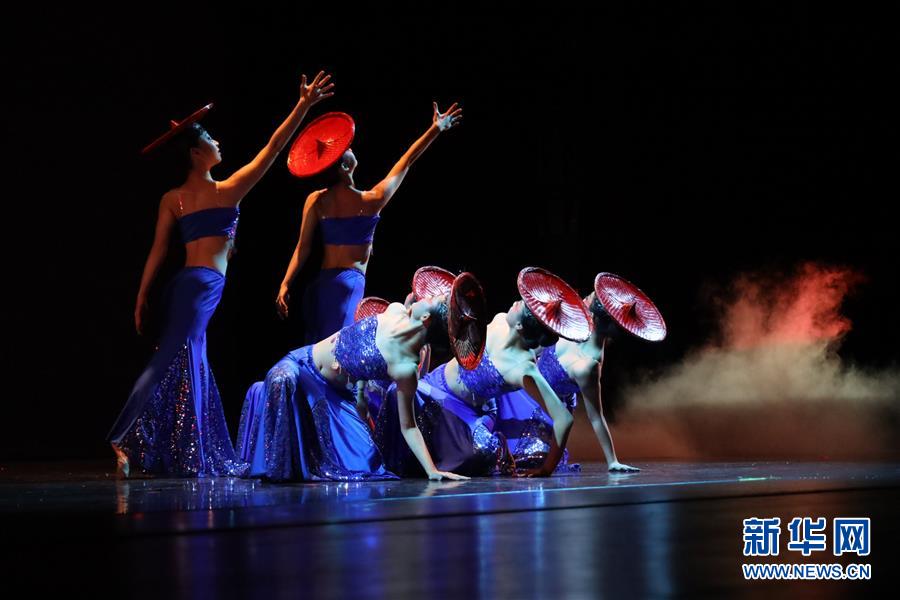 1月11日,在美國休斯敦舉辦的“擁抱春天”晚會上,演員表演傣族舞《山靈》。