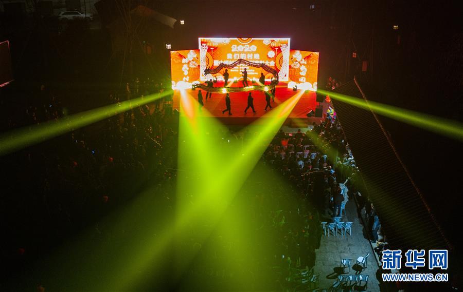 1月14日,杭州市余杭區(qū)中泰街道中橋村的文化公園內(nèi)在進行“我們的村晚”舞龍表演,吸引了大批當?shù)匕傩沼^看(無人機照片)。臨近春節(jié),浙江省杭州市余杭區(qū)中泰街道各村社的文化禮堂紛紛上演“我們的村晚”。老百姓自編、自導、自演為主的“土味”聯(lián)歡會因接地氣、親情濃而深受當?shù)匕傩盏南矏?,成為當?shù)剜l(xiāng)村百姓的新年迎春“文化大餐”。近年來,中泰街道以文化振興助推鄉(xiāng)村振興。目前,中泰街道下屬各村陸續(xù)建成文化禮堂7個、社區(qū)文化家園2個,努力培育和挖掘出一批鄉(xiāng)土文化人才及原創(chuàng)作品,2019年全年開展各類鄉(xiāng)村社區(qū)惠民文體活動累計180余場次。新華社記者徐昱攝