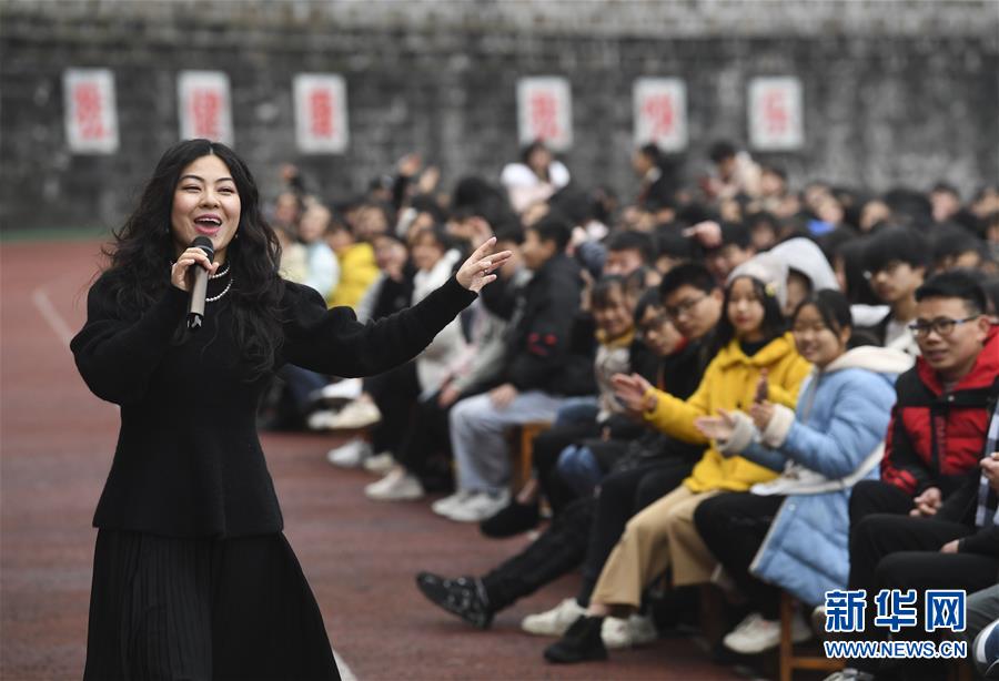 1月15日,中央歌劇院女高音歌唱家蔡楠在慰問演出中演唱。 當(dāng)日,“我們的中國夢”——文化進萬家中央歌劇院文藝小分隊來到重慶市石柱土家族自治縣第一職業(yè)學(xué)校進行慰問演出,為學(xué)校的三千多名師生帶來了一場精彩的音樂大餐。 新華社記者 王全超 攝