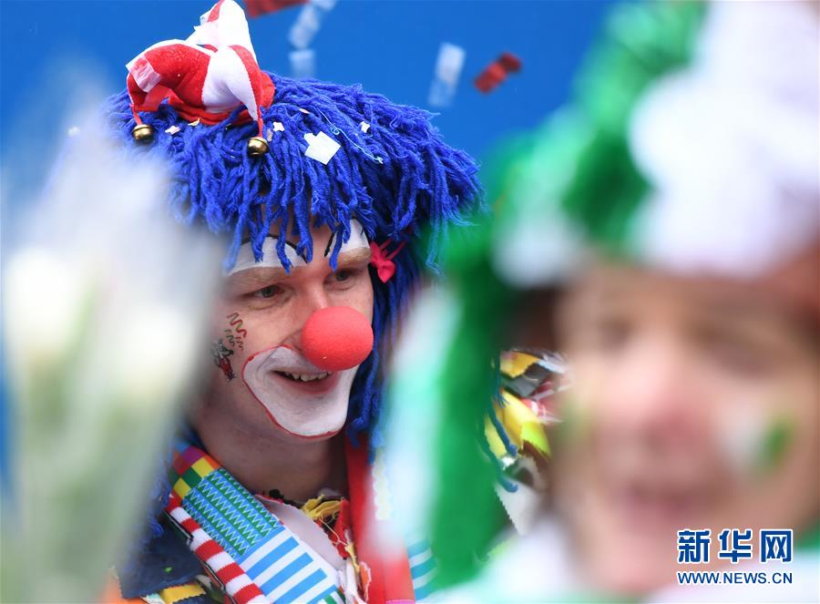 2月24日,在德國(guó)科隆,人們參加“玫瑰星期一”大游行。新華社記者 逯陽(yáng) 攝