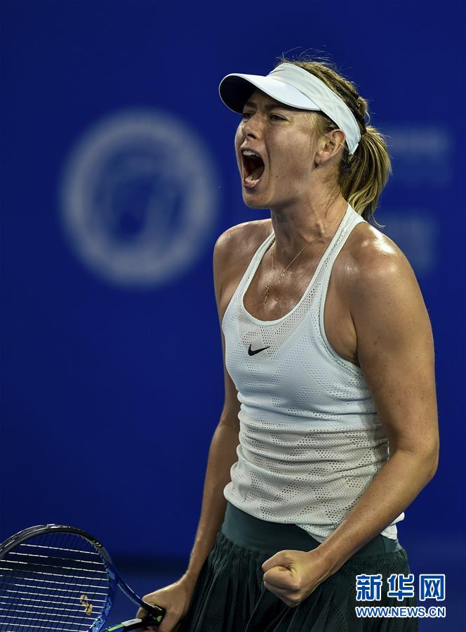圖為2017年10月15日,莎拉波娃在2017年WTA天津網球公開賽單打決賽中戰(zhàn)勝白俄羅斯選手薩巴倫卡,獲得冠軍。 新華社記者岳月偉攝