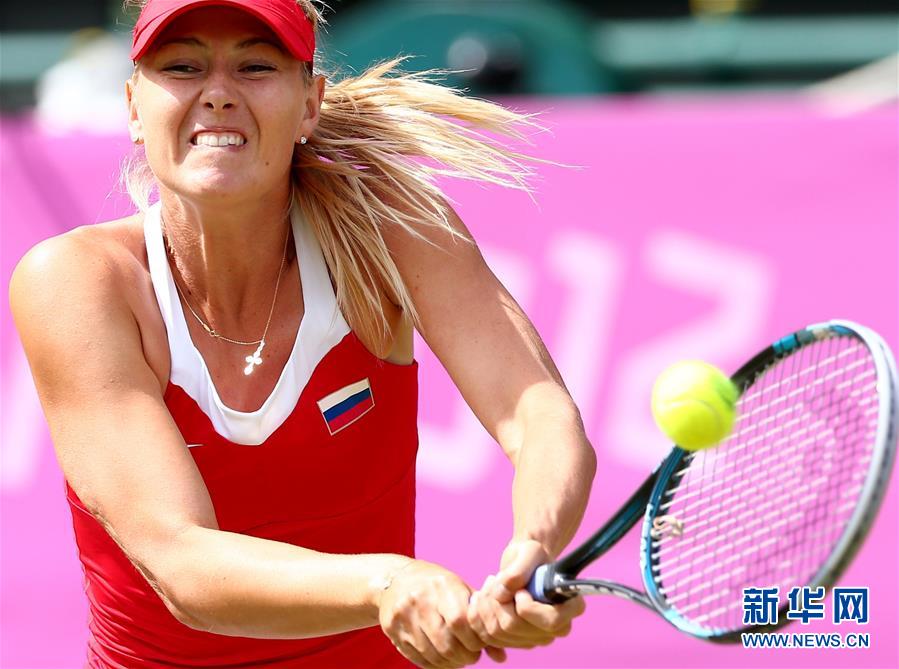 圖為2012年8月4日,莎拉波娃在倫敦奧運會網球女單決賽中回球。最終,她以0比2不敵美國選手小威廉姆斯,獲得亞軍。 新華社記者陳建力攝