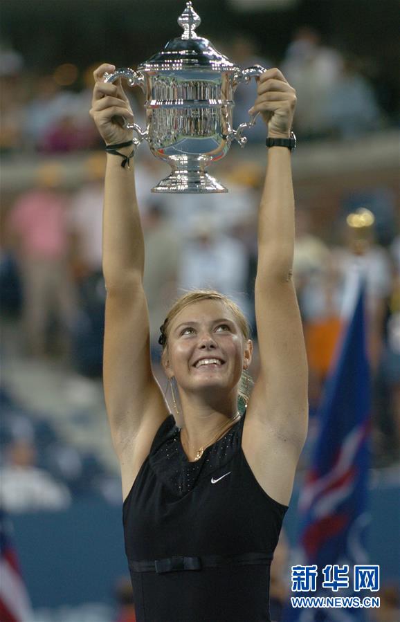 圖為2006年9月9日,莎拉波娃在美國網球公開賽女單決賽中戰(zhàn)勝比利時選手海寧,奪得冠軍。 新華社記者趙鵬攝