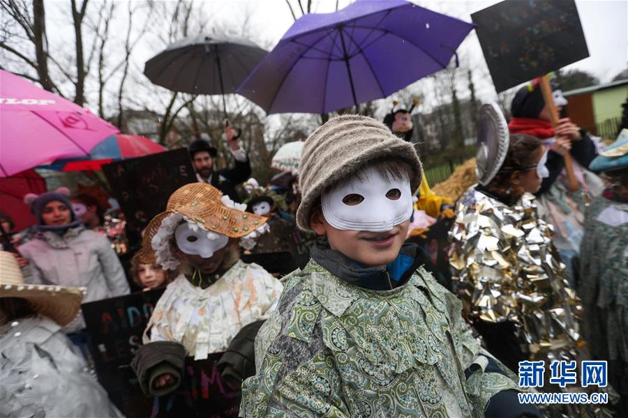 2月27日,兒童在比利時(shí)布魯塞爾參加狂歡節(jié)活動(dòng)。 新華社記者鄭煥松攝