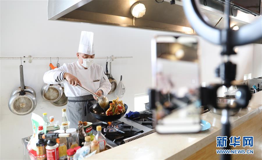 3月4日,職教城內(nèi)的鞍山市現(xiàn)代服務(wù)學(xué)校的李崇老師為學(xué)生進(jìn)行遼菜烹飪實(shí)訓(xùn)網(wǎng)絡(luò)授課。遼寧省鞍山市職教城內(nèi)的各類職業(yè)教育學(xué)校從3月2日恢復(fù)網(wǎng)絡(luò)授課以來,教師們設(shè)置了豐富多彩的課程,提高1萬余名學(xué)生線上學(xué)習(xí)的積極性。新華社記者 姚劍鋒攝