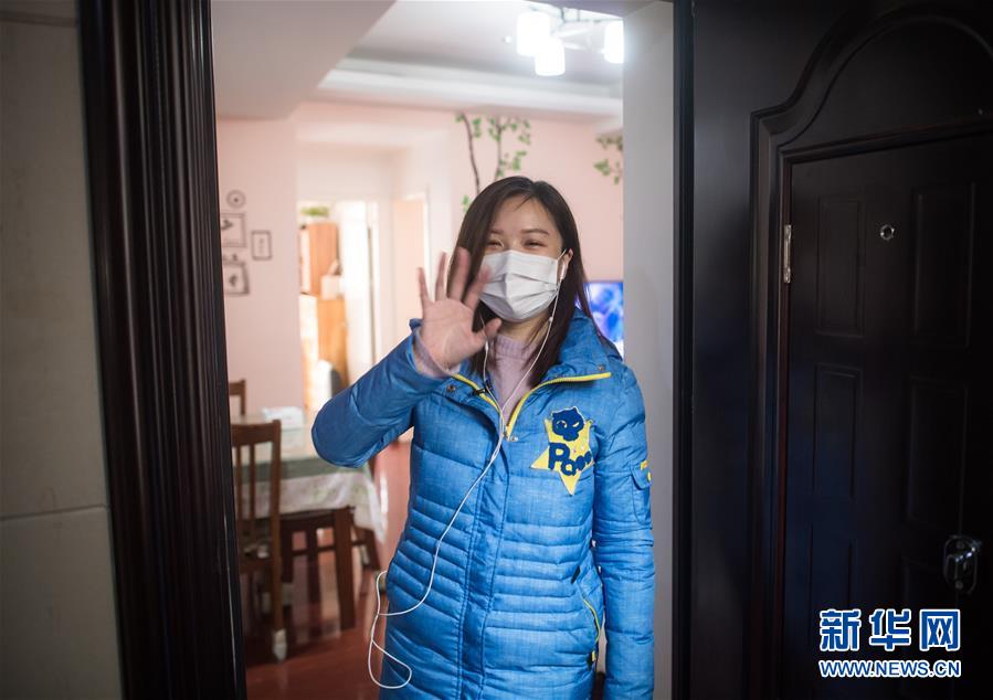 3月12日,黎婧到家后與小區(qū)網(wǎng)格員揮手告別。 3月12日,插畫師黎婧和84位病友離開自己居住的武漢軟件工程職業(yè)學院康復驛站,回到自己家中。他們都是治愈出院的新冠病毒肺炎患者,已經(jīng)在武漢軟件工程職業(yè)學院康復驛站進行了14天醫(yī)學觀察,達到醫(yī)學標準,成功解除隔離。他們由專車運送至所屬社區(qū)附近的集散點后,在社區(qū)工作人員的陪同下回家。 新華社記者 肖藝九 攝