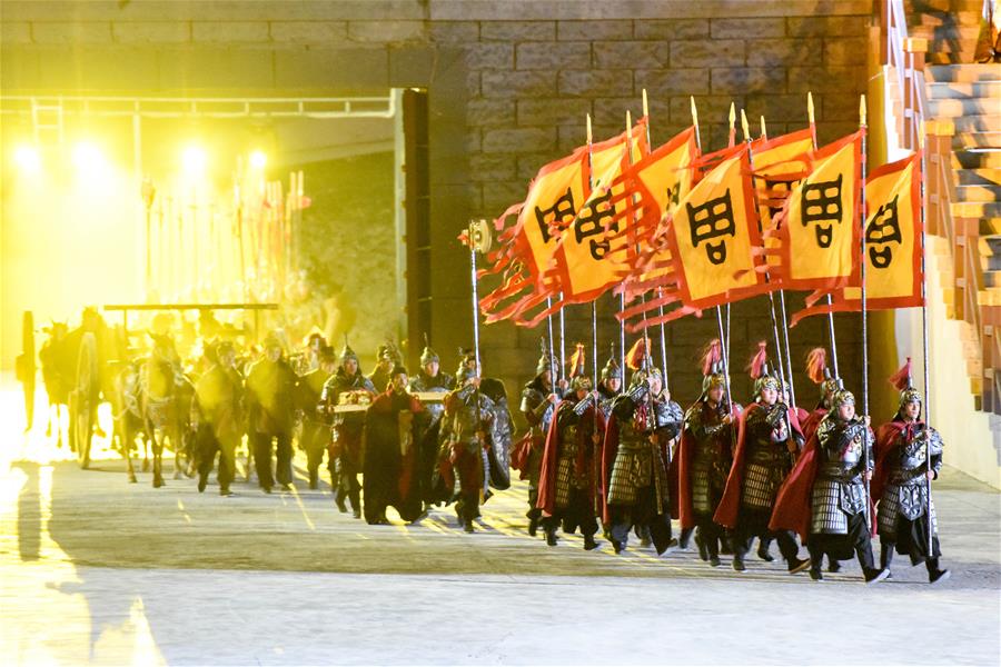 5月28日,演員在大型實(shí)景神話音樂劇《昆侖之約》中表演。5月28日,新疆文化旅游新名片——大型實(shí)景神話音樂劇《昆侖之約》在烏魯木齊南山景區(qū)上演。該劇融自然山水之美、藝術(shù)文化之光、現(xiàn)代科技之新于一體,為市民獻(xiàn)上一場視聽盛宴。新華社記者丁磊攝。