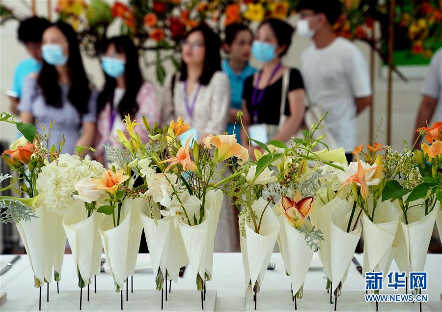 這是開幕式現(xiàn)場展示的大學(xué)生設(shè)計(jì)創(chuàng)作的萱草花小花束(6月13日攝)。6月13日,“2020中國(上海)萱草文化節(jié)”在上海應(yīng)用技術(shù)大學(xué)開幕,校園里數(shù)百個(gè)品種的萱草花競相綻放,萱草科研推廣、萱草文化交流等多項(xiàng)活動(dòng)同時(shí)舉行。新華社記者 劉穎 攝