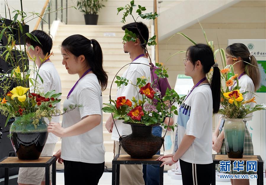 6月13日,上海應(yīng)用技術(shù)大學(xué)的學(xué)生們?cè)O(shè)計(jì)創(chuàng)作的萱草花藝作品即將在開幕式現(xiàn)場亮相。當(dāng)日,“2020中國(上海)萱草文化節(jié)”在上海應(yīng)用技術(shù)大學(xué)開幕,校園里數(shù)百個(gè)品種的萱草花競相綻放,萱草科研推廣、萱草文化交流等多項(xiàng)活動(dòng)同時(shí)舉行。新華社記者 劉穎 攝