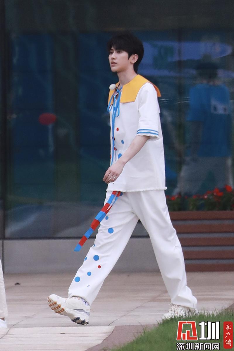 蔡徐坤穿白色波點(diǎn)裝帥氣陽(yáng)光。