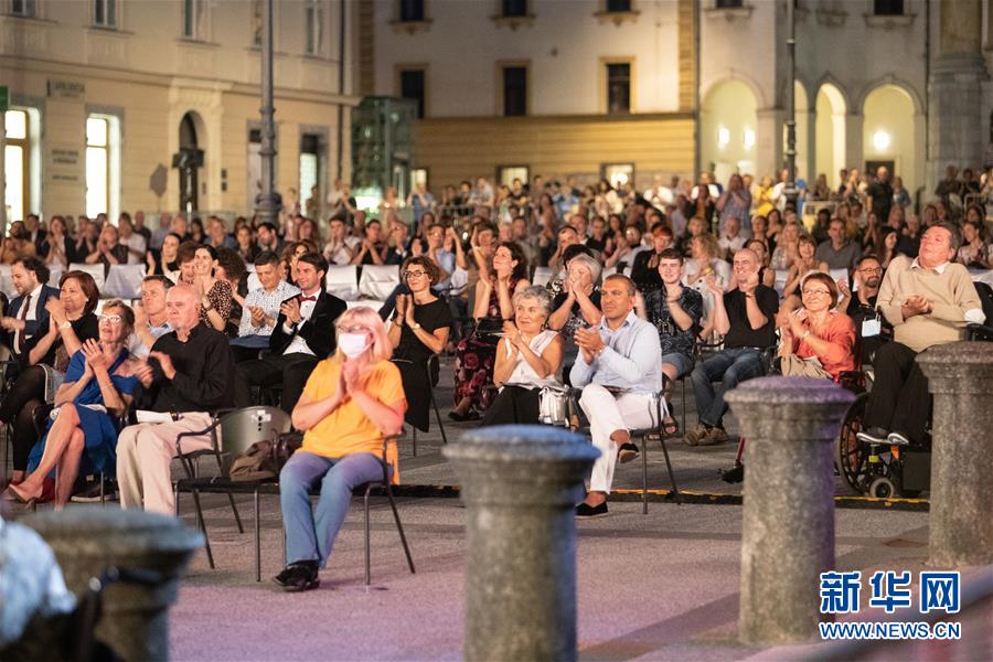 7月1日,觀眾在斯洛文尼亞首都盧布爾雅那觀看藝術節(jié)開幕式演出。當日,第68屆盧布爾雅那藝術節(jié)拉開帷幕。新華社記者彭立軍攝