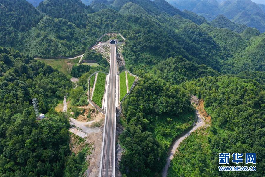 7月6日拍攝的安六鐵路彭家沖一號(hào)大橋附近的景觀(無人機(jī)照片)。當(dāng)日,新建貴州安六鐵路(安順至六盤水)聯(lián)調(diào)聯(lián)試工作進(jìn)入收尾階段,開通前的各項(xiàng)準(zhǔn)備工作已基本就緒。安六鐵路線路全長約125公里,設(shè)計(jì)時(shí)速250公里,為國家I級(jí)雙線客運(yùn)專線。建成投用后,貴陽至六盤水的鐵路旅行時(shí)間可從現(xiàn)在的3.5小時(shí)縮短為1小時(shí)左右,貴州省六盤水市將全面接入全國高鐵網(wǎng)。新華社記者劉續(xù)攝