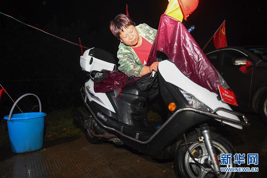 7月7日深夜,在沅江市南嘴鎮(zhèn)目平湖大堤參加防汛值守的村民交接班后準(zhǔn)備騎車回家。新華社記者陳澤國攝